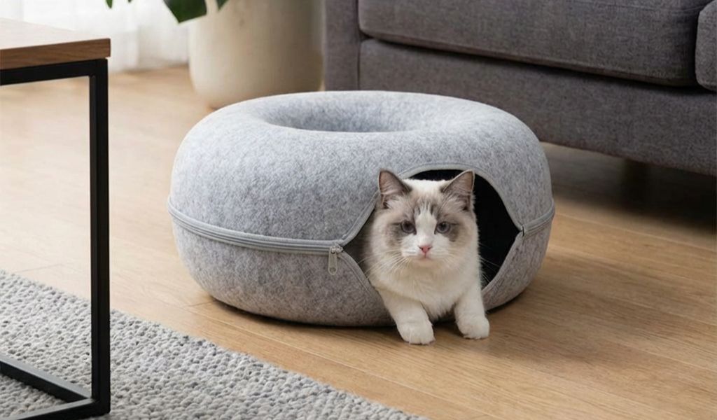 DonutBett | 2-in-1 Filz Katzenbett & Kuschelhöhle